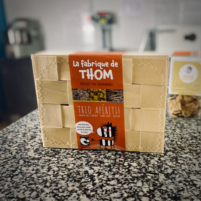 À offrir ou à mettre sur la table, cette jolie boîte en bois pourra vous accompagner et vous fera découvrir environ 160 g de chaque biscuit salé, les grissini, le crackers aux graines et les carrés curry, notre best-seller de l'apéritif !